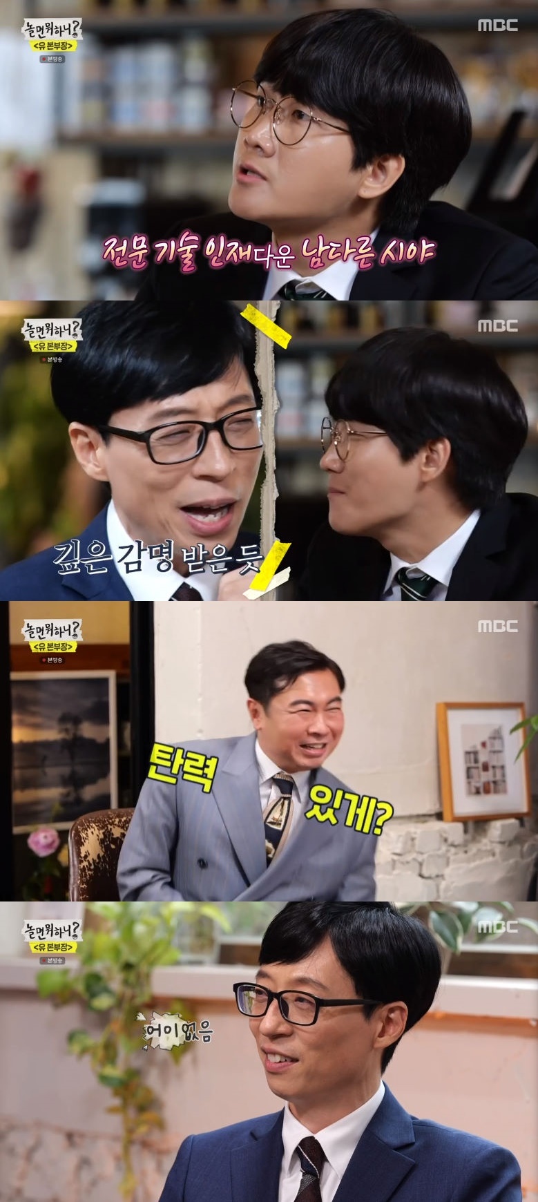 무한상사에서 유 부장이었던 유재석이 jmt라는 새 회사의 본부장으로 옮겨 새롭게 일할 멤버들을 면접하는 얘기가 29일 '유본부장' 내용이다. 면접을 끝내고 유본부장이 피로를 풀기 위해 찾은 라면 식당 백만불식품. 정준하는 29일 자신의 sns에 오랜만입니다!!!! '놀면 뭐하니?' 유 본부장, 정과장 깜짝 재회…비드라마 출연자 화제성 1위, hei Mbc 예능 프로그램 '놀면 뭐하니?'와 국민 예능 '무한도전'의 세계관이 합치됐다. '갑자기'라는 의미는 인기 한창인 음악 예능 'msg워너비' 프로젝트를 잠시 멈추고 '무한도전'의 유명 프로젝트 '무한상사' 후속 버전같은 '유본부장'을 29일 방송했다. '놀면 뭐하니'의 김태호 pd와 유재석은 '놀면 뭐하니'에 앞서 '무한도전'을 함께 했고 '무한상사'는 회사 한 부서의 직장인들 상황극이다. 오는 5일 저녁 6시 30분에 방송되는 mbc '놀면 뭐하니?'(연출 김태호 윤혜진 김윤집 왕종석 작가 최혜정)에서는 jmt(조이 앤 뮤직 테크놀로지) 유재석 본부장(이하 유 본부장)의 '고독한 면접' 두 번째 이야기가 공개된다. 무한상사에서 유 부장이었던 유재석이 jmt라는 새 회사의 본부장으로 옮겨 새롭게 일할 멤버들을 면접하는 얘기가 29일 '유본부장' 내용이다. 오는 5일 저녁 6시 30분에 방송되는 mbc '놀면 뭐하니?' 유재석 본부장(이하 유 본부장)의 '고독한 면접' 두 번째 이야기가 공개된다. 웨이브) 무한상사를 퇴사한 유 부장이 첫 사수의 추천으로 jmt라는 회사에 입사하면서 직책은 본부장을 맡게 됩니다. 5일 방송된 mbc '놀면 뭐하니?'에 이은지가 출연해 유재석과 환상의 케미를. '무한도전'이 종영한 이후 텔레비전 프로그램은 본 적이 없다.